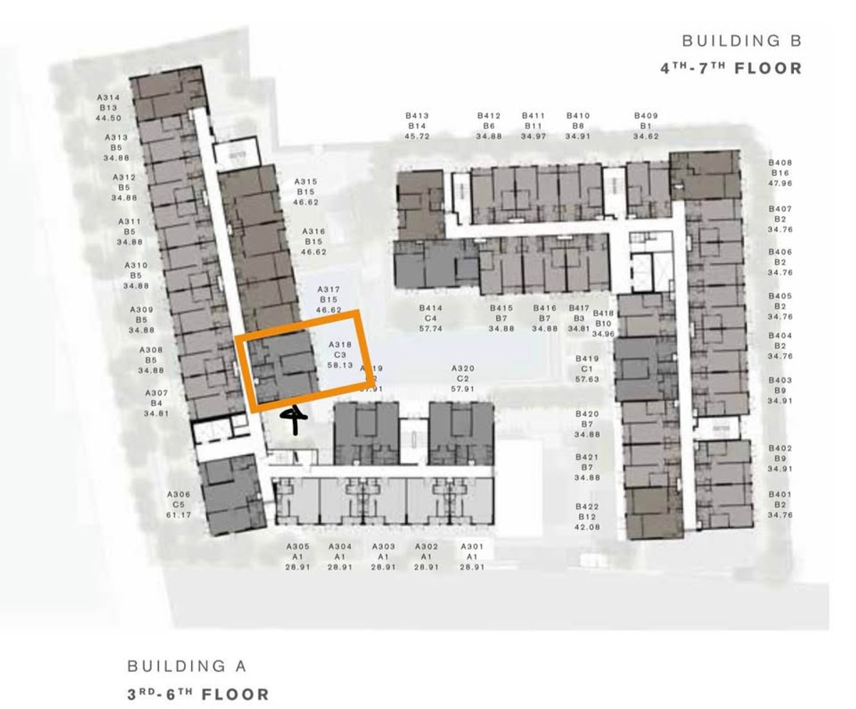 58 sqm, 4th floor (low-rise 7 floors), Building A